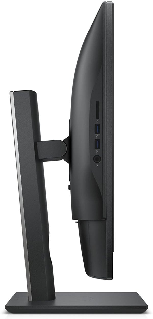 Dell OptiPlex 7440 هو أسود اللون للشركات ، ويبلغ قياسه 15.5 × 22.6 × 2.5 بوصة (HWD) ويزن 15.9 رطلاً ، يبدو وكأنه مجرد شاشة وحيدة — يتم شحن وحدة المراجعة الخاصة بنا مع الحامل الأساسي القابل لضبط الارتفاع ، على الرغم من أنه يمكنك طلب النظام بحامل مفصلي (مثل ذلك الموجود في HP EliteOne 800) إذا كنت تفضل ذلك. الحامل سميك ، أسود ، غير لامع لامع ليناسب الشاشة ، وهناك فتحة كبيرة في وسطه لتناسب التصميم الرائع. يمكنك ضبط الحامل لعرض الشاشة بزاوية طفيفة (حوالي 30 درجة) ، ويسمح لك بتدوير الشاشة وتبديلها بين الوضعين الأفقي والعمودي. وحدة المراجعة الخاصة بنا مزودة أيضًا بلوحة مفاتيح سلكية وفأرة سلكية على طراز chiclet ، وكلاهما يعمل بسلاسة ؛ تعد مجموعة لوحة المفاتيح والماوس اللاسلكية اختيارية.